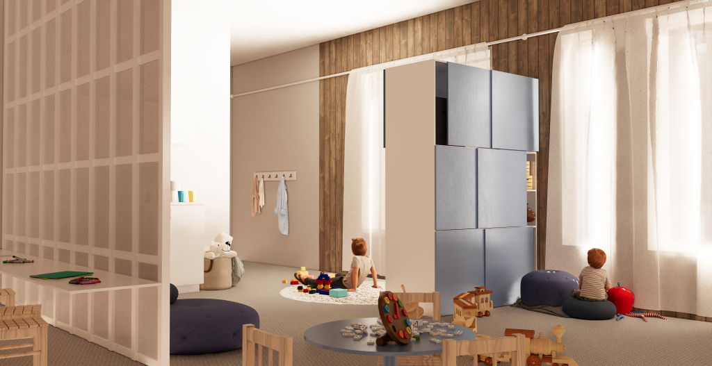 Návrh ráta s 8-hodinovou prevádzkou materskej školy so začiatkom výučby v ranných hodinách a ukončením medzi 15. a 16. hodinou. Potom je možné zariadenie využiť na organizovanie aktivít napríklad pre staršie deti.