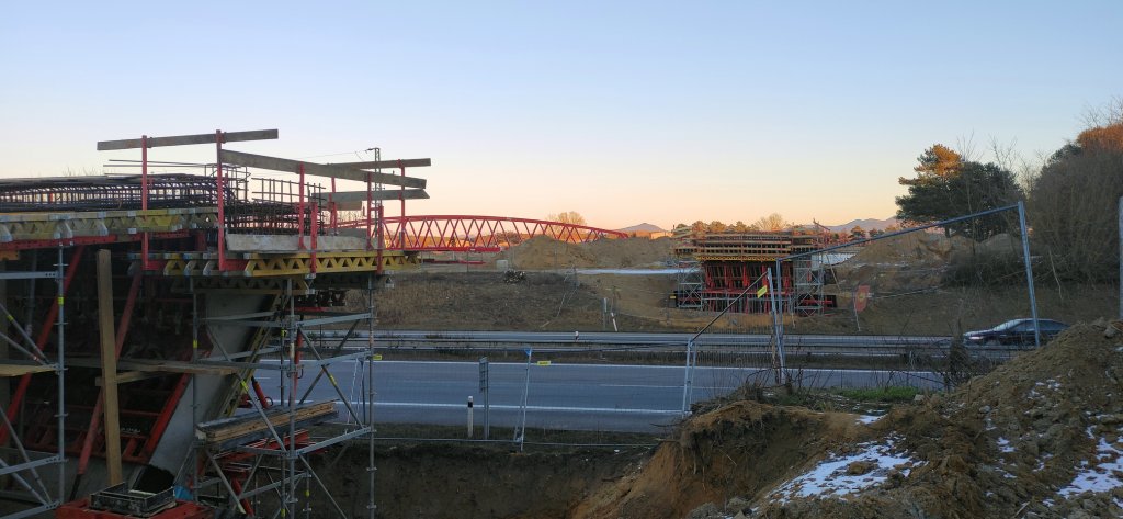 Na oboch stranách budúcej lávky sa robia záverečné práce (debnenie, armovanie). Termín osádzania je stanovený na víkend 31. január – 1. február. Lávka sa bude osádzať v noci zo soboty na nedeľu, pričom v čase 22.00 h (sobota 31. január) – 6.00 h (nedeľa 1. február) bude uzavretý úsek diaľnice D2 medzi Kútmi a Malackami. Obchádzková trasa Kúty – Malacky povedie po starej ceste, t. j. cez Sekule, Moravský Svätý Ján a Veľké Leváre.