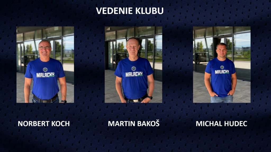 Okrem M. Hudeca sú vo vedení klubu Norbert Koch (prezident) a Martin Bakoš (viceprezident, finančný riaditeľ). Priezvisko Koch je v širokej hokejovej rodine dobre známe: slovenský reprezentant Patrik Koch je synom prezidenta nášho hokejového klubu a zároveň prvým Malačanom, čo hral v najkvalitnejšej lige sveta, NHL.