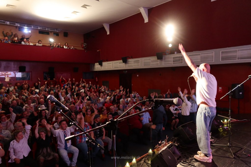 Tradičný benefičný koncert neziskovej organizácie Vstúpte, ktorá sa venuje klientom s mentálnym postihnutím v našom meste, sa uskutočnil v nedeľu 23. novembra v malackom kine. Hľadisko sa opäť zaplnilo do posledného miesta a účinkujúci, ktorí vystúpili bez nároku na honorár, vytvorili úžasne prajnú a láskavú atmosféru spoločne s prijímateľmi sociálnej služby vo Vstúpte. Tí sa zabávali a užívali si prítomný moment.