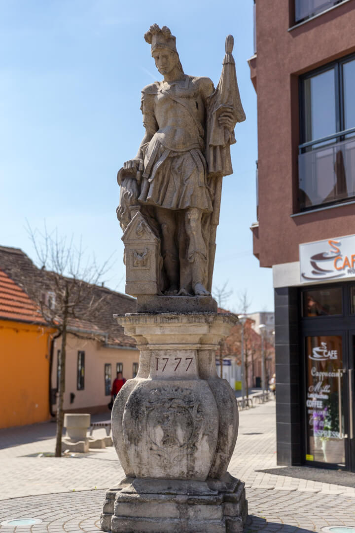 Socha svätého Floriána stojí na Záhoráckej ulici, pričom dlhé roky tam bol iba podstavec. Z pôvodnej sochy sa zachovalo iba beztvaré torzo, ktoré je uložené v kryptách, ale inak nebola dostupná žiadna fotodokumentácia. Svätý Florián sa na podstavec vrátil na jeseň 2002. Malacký hlas pri tejto príležitosti písal: „Podstavec z marcheggského pieskovca uvádza letopočet 1777. Akademický sochár v snahe dodržať všetky znaky, ktoré by mala obsahovať neobaroková socha a zároveň postava Rimana opradeného legendou, navštívil mnoho záhorských obcí a vytvoril si vlastný fotoalbum sôch sv. Floriána. Z nich potom vytvoril vlastný návrh, ktorý obsahuje nevyhnutné prvky: uniformu rímskeho vojaka, plášť, oceľovú prilbu, vedierko, vlajku, domček s plameňmi, prúd vody i ostré črty tváre postavy.“